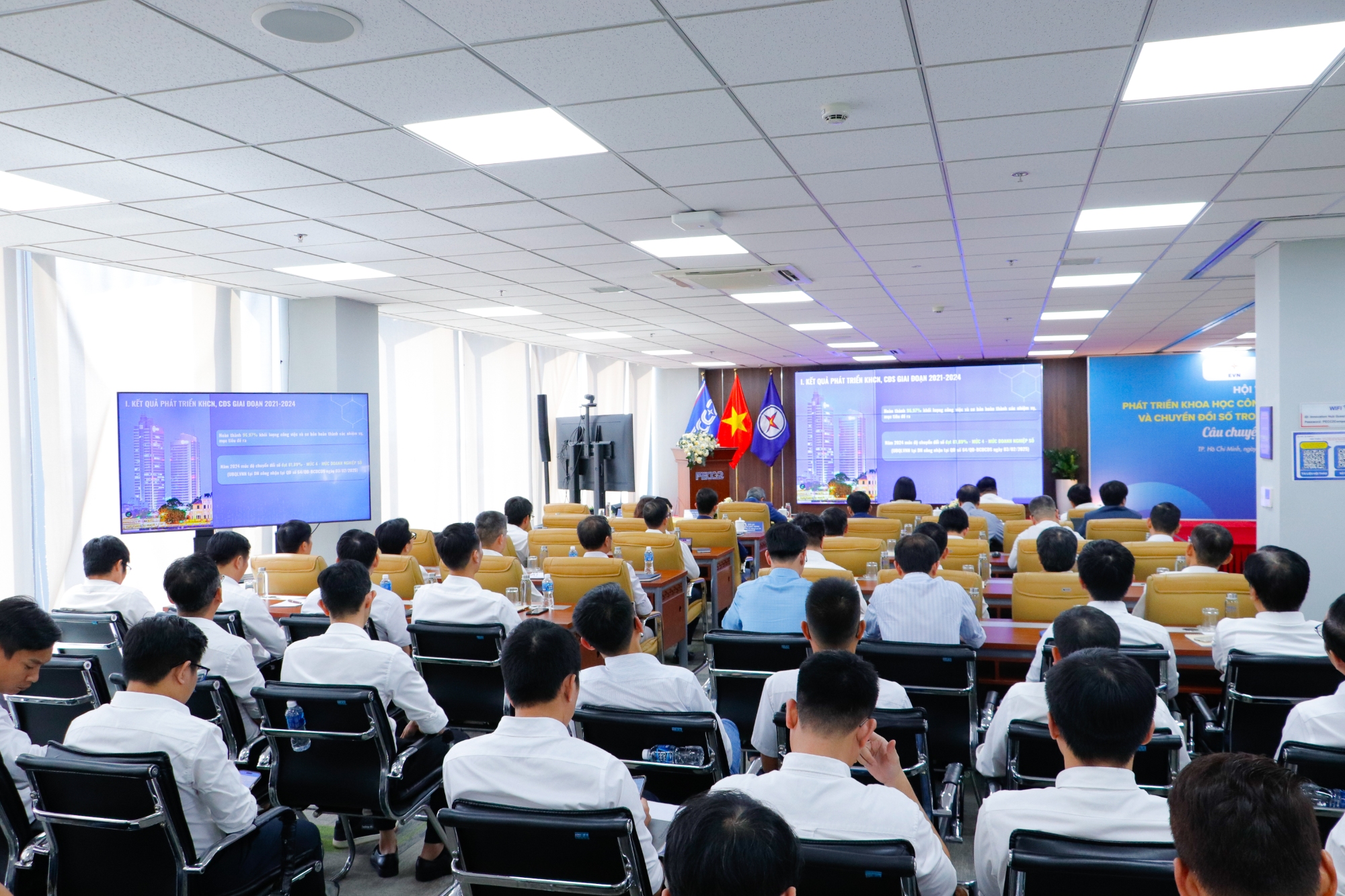 Hội thảo được triển khai theo ba phần chính gồm: các tham luận chuyên đề về khoa học công nghệ, đổi mới sáng tạo và chuyển đổi số; cùng hoạt động tham quan trưng bày các sản phẩm công nghệ, mô hình số, sản phẩm số và trung tâm điều khiển vận hành từ xa do PECC2 phát triển.